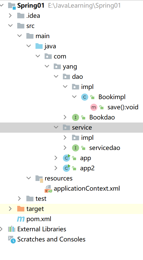 import com.yang.service.servicedao; public class app2 { public static void main(String[] args) { //获取IOC容器 ApplicationContext ctx = new ClassPathXmlApplicationContext("applicationContext.xml"); //获取bookimp的bean // Bookdao Bookdao = (Bookdao) ctx.getBean("bookdao"); // Bookdao.save(); //获取serviceimpl的bean servicedao servicedao = (servicedao) ctx.getBean("servicedao"); servicedao.save(); } }