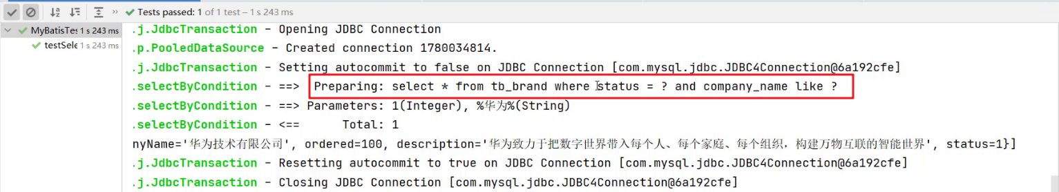 时,里面的内容必须和实体类属性名保持一致。List<Brand> selectByCondition(Brand brand);